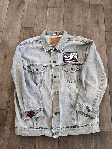 VTG DENIM JACKET CUSTOM HARLEY DAVIDSON PATCHES 24 x 29 USA MADE