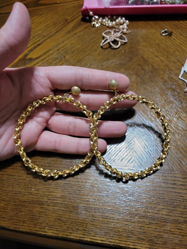 Vintage Massive Gold Tone Clip Statement Earrings.