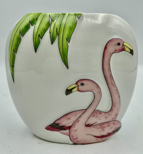 The vase is pink, white, and green in color, with a glossy finish and made of porcelain or ceramic.