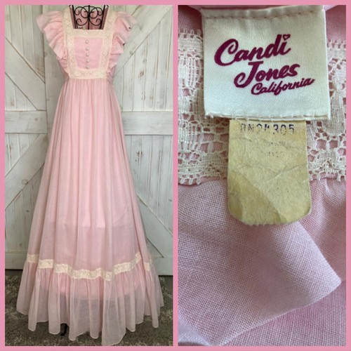 Label- Candi Jones. There are two tiny pin dot holes to the voile on the front of the skirt, the skirt is lined so these are difficult to see. Most dresses and skirts are shown with a crinoline which is not included.