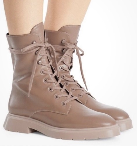 Stuart Weitzman Mckenzee Leather Lace-up Platform Combat Boots Taupe Size 10 super soft leather excellent Preloved condition no cuts or holes as shown in photos.