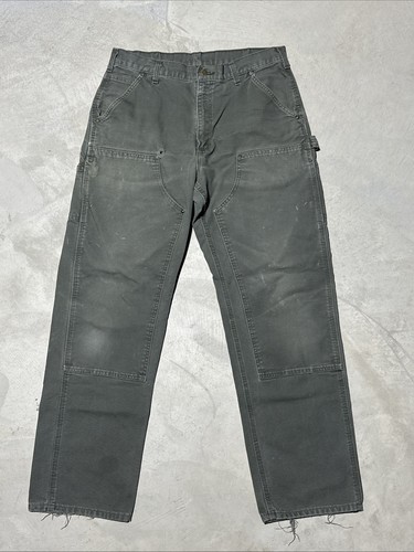 Awesome vintage Carhart double knee pants size 34 x 34. Please see photos for exact measurements does have a small hole on the front as shown in photos. Thank you.