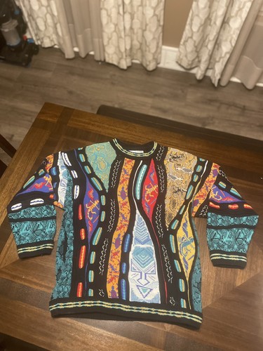 The Vintage Carlo Alberto Australia Sweater in size S/M is a cozy and stylish addition to any man's wardrobe. This COOGI-inspired sweater features a crew neck, long sleeves, and a vibrant multicolor knit fabric perfect for casual occasions in the winter and fall seasons. Made from cotton with a regular fit, this pullover sweater adds a touch of 90s nostalgia with its vintage appeal and Carlo Alberto branding. Ideal for those who appreciate unique and retro pieces, this sweater is sure to stand out in any collection.
