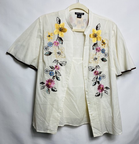 Vintage Embroidered Flowers Women’s Blouse and Tank 2 Pc Size 16 Ivory. Tank top: Pit-pit 21” Length 24” Blouse : Pit-pit 22” Length 26”