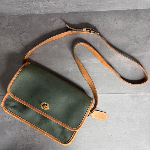 7021 Vintage Shoulder Bag Turnlock Leather Brown Green Gold Hardware Japan