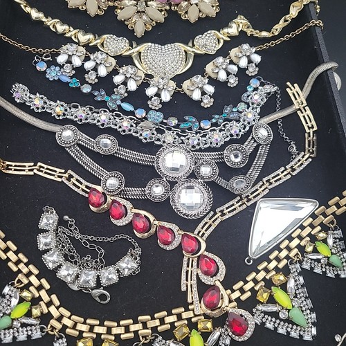 This is a lot of ALL broken jewelry. There are no wearable pieces. The good news, there are tons of rhinestones. Some pieces are vintage and some are not. The photos exactly what you will receive. These pieces are not missing any rhinestones. This lot is for harvest, repair, mixed media, and crafts.
