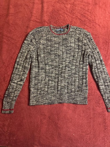 Polo Sweater Mens XL Gray Marled Cable Knit Ribbed Chunky VINTAGE