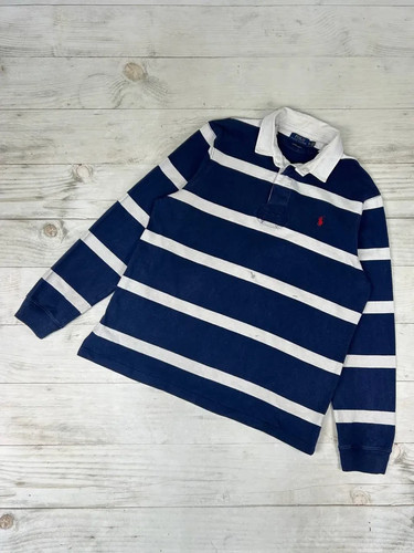Vintage Polo Striped Rugby Long Sleeve Shirt Men Sz Xl blue