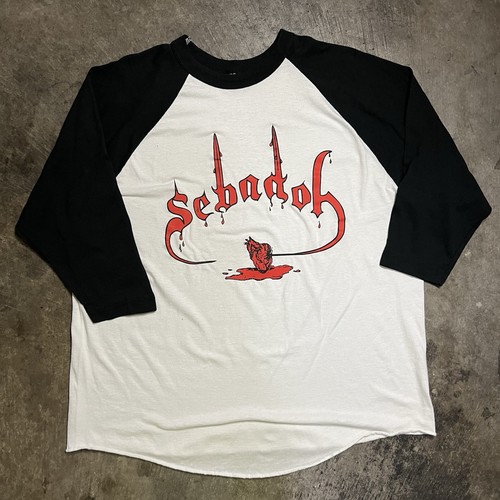 This vintage 90s indie Sebadoh rock band 3/4 sleeve t-shirt is a must-have for any fan of the band. Made by Russell Athletic, this size XL shirt features a crew neck and a bold graphic print in black and white. With its unique 3/4 sleeve design and vintage appeal, this shirt is perfect for any music lover looking to show off their love for Sebadoh in style. Ideal for casual wear or as a statement piece to rock out to your favorite tunes.
