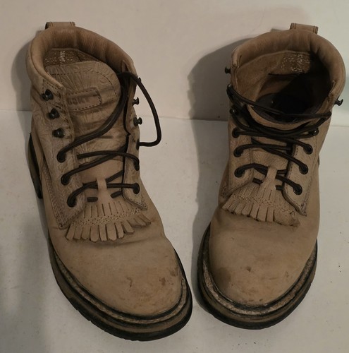 These ankle boots feature an almond toe shape, lace-up and hook closure, and are designed for equestrian use with a low safety riding heel. Made of leather with a cushioned insole and arch support, these boots are both stylish and functional, perfect for Western, rodeo and ranch activities in all seasons.