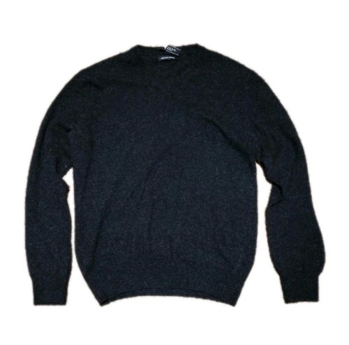 100% Italian cashmere. A barely visible knick below one of the sleeves (pictured above). The item tag's sewing has come undone on the left side. Otherwise great condition