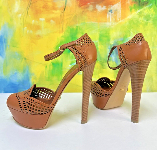 $1,275 Vintage SERGIO ROSSI Rare2Find Y2K Cognac/Tan Laser Cut Leather Heels 7.5 - $349.99 | Triply Vintage