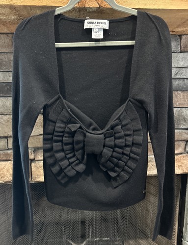 BRAND Sonia Rykiel SIZE 42 US 8/10 COLOR black STYLE long sleeve-bow detail MATERIAL 90% new wool 10% cashmere Measures approx Armpit to armpit 14 Length 21.5 Smoke/pet free home BIN#PU
