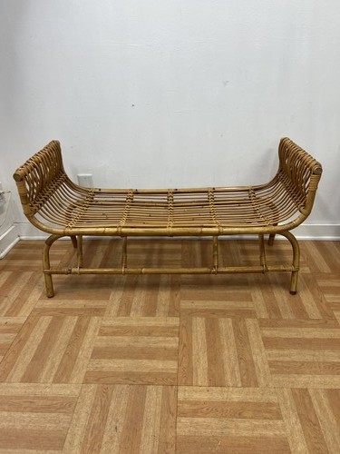 The warm, natural finish highlights the intricate weaving and durable construction. Solid and excellent condition with tight wrapping. Seat height is at 13" tall.