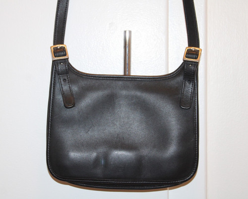 Mini Hippie Slim Saddle Crossbody Bag Black Leather Vintage #9142