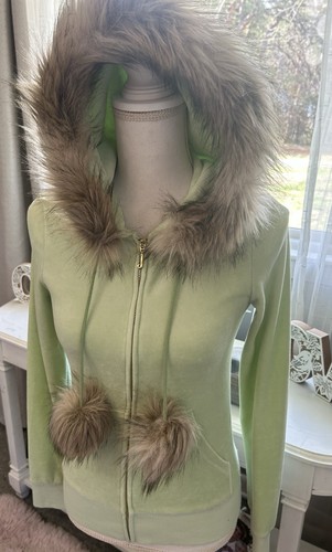 Amazing Detail: Faux fur trim hoodie with Pom Pom ends. Fabric: Ultra-soft, plush signature velour. This was a limited edition with the fur trim! Hard to find especially with the faux fur still fluffy and not matted!