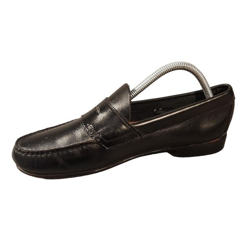 Brand: G.H. Bass & Co. Style: Oxford Penny Loafer - Weejuns FS Penny SS. Color: Black. Size on tag: Mens 9 D. Material: Leather upper and leather outsole. Model and label information: G.H. Bass & Co. WEEJUNS FS PENNY SS; internal stamp 1894 002; stamped LEATHER UPPER AND OUTSOLE MADE IN EL SALVADOR. Closure: Slip On. Design details: Classic penny strap, moccasin-style toe stitching, low stacked heel, perforated leather insole. Features: Slip On, Cushioned, Lined, Leather outsole, Round toe. Occasion and use: Dress or business casual loafers suitable for office, formal, or everyday wear.