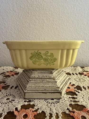The product is a vintage 16 oz. casserole baking dish from Pfaltzgraff, manufactured in 1983. This retro yellow ceramic dish features a rectangular shape and a glossy finish. It is marked with an impressed backstamp and is microwave safe. The dish is themed with American style and is a part of the 1980-1989 time period. Perfect for adding a touch of retro charm to your table setting or kitchen decor.
