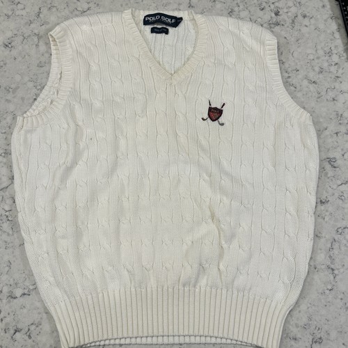 Vintage Polo Golf Ralph Lauren Cable Knit Sweater Vest Mens Large/L Cream 90s. Condition is Pre-owned - Excellent. Shipped with USPS Ground Advantage.