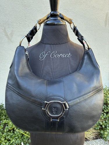 Features a unique wood/bamboo style handle connected by silver-tone rings. The front showcases a signature harness-style ring with the embossed Frye logo. Zip top closure and spacious interior. Otherwise this hobo Frye bag is beautiful.