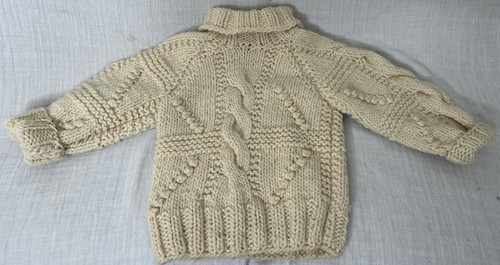This Vintage Baby Fisherman Cable Knit Cottage Core Wool Cardigan in ivory is a charming and cozy addition to any little one's wardrobe. Made from wool and featuring a classic cable knit pattern, this cardigan has a button closure and a crew neck neckline. The boho, 90s, and cottage core themes make it perfect for layering in the colder seasons, while the unisex appeal allows for easy styling for any little one. Whether you're dressing a baby boy or girl, this vintage cardigan is sure to be a timeless favorite.