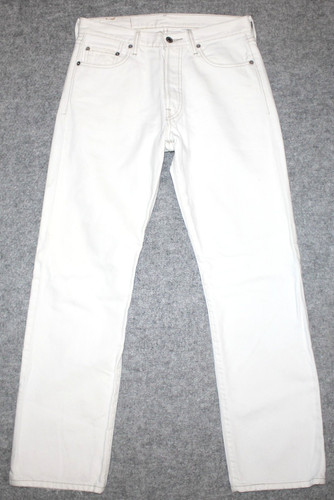 They have been clean, well-cared for, and are ready to wear. Iconic Button Fly | 2004 Era Production | 100% Cotton Denim |Color: White. Rise: 10.5 in. Straight Fit Silhouette: Designed with a regular fit through the seat and thigh and a straight leg from the knee to the ankle for a clean, versatile aesthetic.