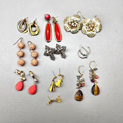 All 10 pair of earrings are for pierced ears. All pairs shown in photos are included. Pre-owned, in good overall condition with light wear from normal use. No major breaks or structural issues.