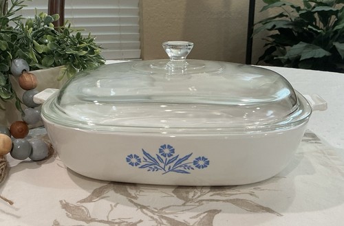 Made of Pyroceram (ceramic), this original piece is perfect for baking and serving in electric, gas, or microwave ovens. Pristine condition, lid and dish. Blurry blue ink stamp on bottom.