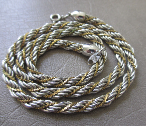Vintage Trifari Rope Choker Chain Necklace with Gold & Silver Tone. Great stacking 16" retro necklace.