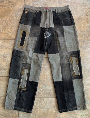 Ozoc Jeans Mens 42x33 Y2K Baggy Wide Leg Skater Patchwork grunge Hip Hop 90s. They are in preowned condition, a few spots and crotch was blown out and repaired with patch, hole along seam(could be stitched), see photos. Measures: Across waist laying flat 20.5” Rise 14.5” Inseam 32.25” Laying flat across thigh 16” Laying flat across cuff 11”