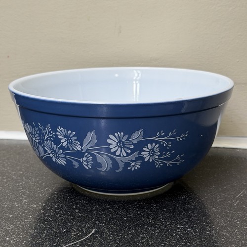 One Pyrex #402 Colonial Mist mixing bowl exactly as shown in the photos. No lid is included (none was originally provided with this open mixing bowl style). • Markings on base: “402 2.51 PYREX FOR OVEN AND MICROWAVE NO STOVETOP OR BROILER CORNING N.Y. USA”.