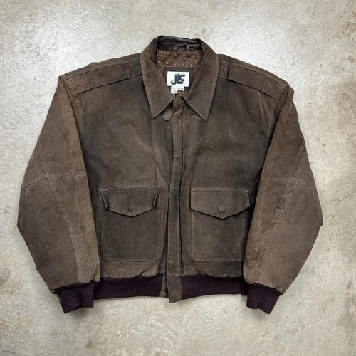 Vintage Brown Leather Suede bomber Jacket JLC Mens Medium Measurements are in the photos. Some wear and fading on the collar and arms shown Rack