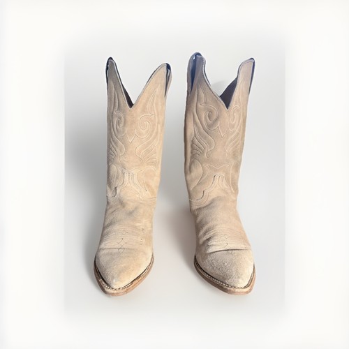The roughout leather (suede-like texture) provides a durable, matte finish that hides scuffs and ages beautifully. Material: Genuine Roughout Leather / Suede Upper, Leather Outsole. Style: Traditional Western / Cowboy.