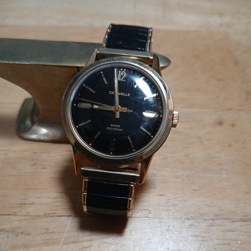 NOS Vintage - Men's Caravelle Watch Black & Gold Mechanical - Runs Well