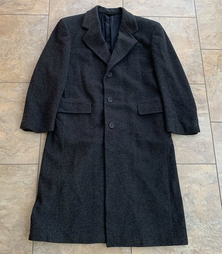 Vintage Barrister Men’s 40 Wool Cashmere Dark Gray Trench Overcoat Coat Long Union made in USA. I could not find size tag(see measurements). It’s in excellent preowned condition, see photos. Measures 23” armpit to armpit, 19.75” shoulder hem to shoulder hem, almost 46” shoulder to bottom hem, 23.75” shoulder hem to cuff.