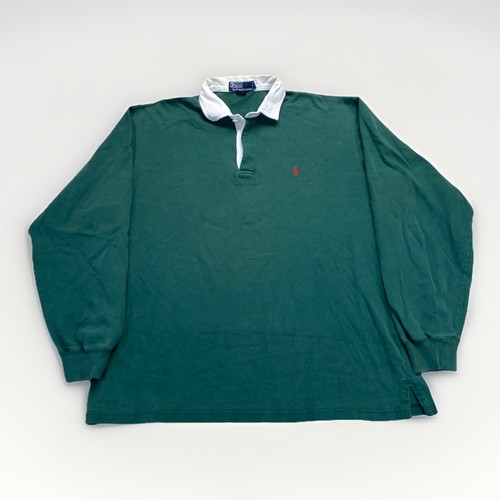 Vintage Polo Rugby Shirt Mens L Green Ivy League Collegiate 90s