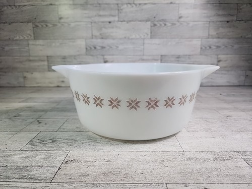 Some external wear but no chips or cracks. No lid The Vintage Pyrex 475 Casserole Dish is a classic piece of American mid-century modern cookware, featuring a round, white milk glass design with the iconic Town & Country stitch pattern. This 2.5 Qt casserole dish, made by PYREX in the USA during the 1960s, is a vintage original that adds a touch of nostalgia to any kitchen. Although it does not come with a lid, this collectible piece is perfect for cooking and serving a variety of dishes, showcasing the timeless charm of Pyrex casserole dishes.