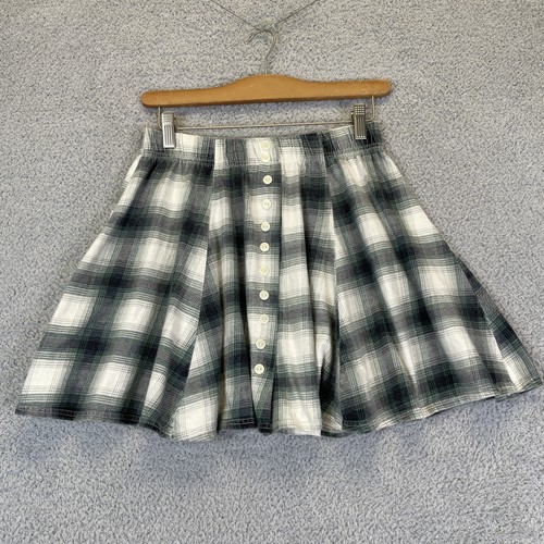 Vintage 90's Women's Plaid Button Front Skirt Size Large Mini Flannel Grunge Currants Approximate Measurements: 30in x 16in (Total Length)