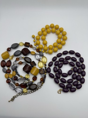 This product is a mixed lot of 3 costume jewelry necklaces, ranging from vintage to more modern styles. The lot includes necklaces in various colors, such as multicolor. These pieces are perfect for those looking to add unique and colorful accessories to their collection. Ideal for fashion-forward individuals, this mixed lot offers a variety of styles to suit different taste preferences and occasions. See pictures for measurements.