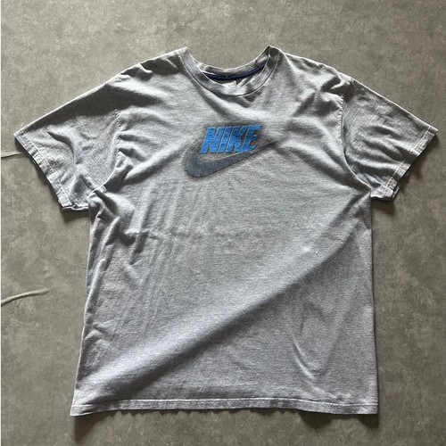 2000s Vintage Blue Swoosh Grey T Shirt
