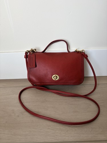 Vintage Turn Lock Shoulder bag Crossbody Red Leather Old Coach MINT