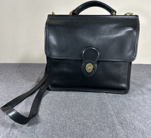 Vintage Black Leather Willis Crossbody Bag Purse Turn lock 9927 Top Handle