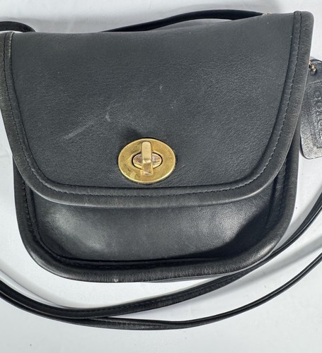 Perfect project purse. Has been cleaned with saddle soap and hydrated with leather CPR. The Rare Vintage Coach Bag Everett Crossbody Black Leather Purse JOC-9934 is a small, crossbody style handbag that exudes luxury and craftsmanship. Made from high-quality black leather with gold hardware accents, this purse features a solid pattern and a turn lock closure. The black leather cross-body strap adds a stylish touch to the design, making it perfect for the fashion-forward woman who appreciates classic American heritage. With its iconic Coach brand and vintage appeal, this handbag is a timeless piece that embodies both style and functionality.