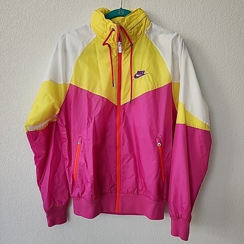 Vintage Nike 90s Colorblock Windbreaker Hooded Jacket Pink Yellow Size XS NWOT. Shipped with USPS Ground Advantage.
