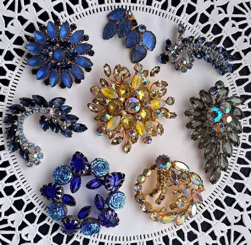 Amazing Vintage High End Unsigned Designer Rhinestone Brooch Jewelry Lot