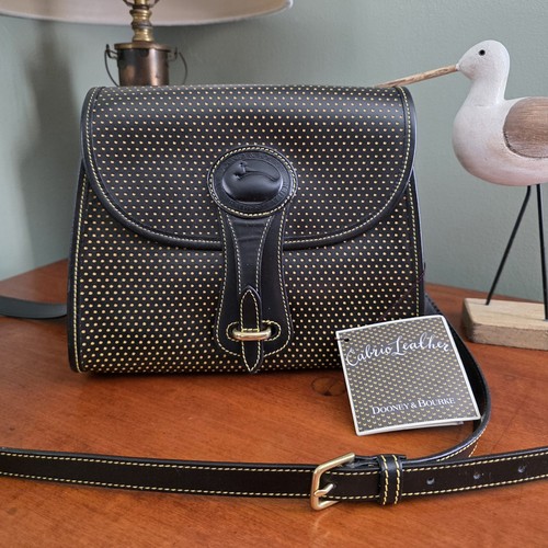 Solid brass hardware. It has an equestrian-inspired belted strap closure and a fully removable strap that is adjustable for shoulder or crossbody wear. The interior is tan suede and has 1 slip pocket, 1 snap secured pocket and 1 zip pocket.