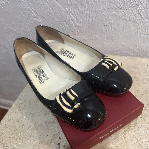 Good pre-owned condition. Light wear. Hard to find style with lucite buckle. See all photos.