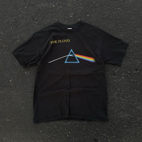 This Vintage Pink Floyd Dark Side Of The Moon Band T-Shirt is a must-have for any 90's music fan. Made of comfortable cotton material with a crew neck and short sleeves, this tee features a solid black color with a logo accent showcasing the iconic Pink Floyd character. The shirt is vintage and manufactured between 1990-1999 by the brand Anvil, and its regular fit and graphic print make it a perfect addition to any music lover's wardrobe. Machine washable and suitable for all seasons, this T-shirt is a timeless piece that embodies the rock and hippie themes of the 90s era. Size:Large Condition: gently used, see photos