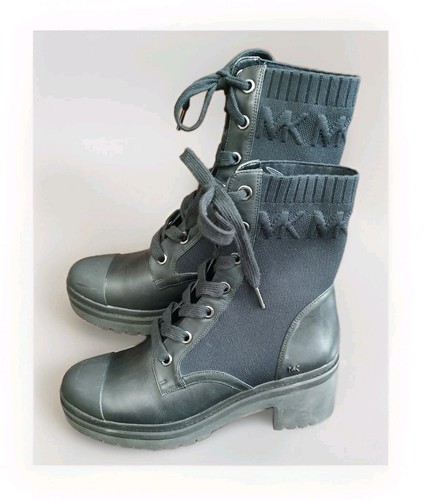 The Michael Kors Brea Combat Boots in black leather are a stylish and versatile option for women. With a closed toe, lace-up closure, and mid heel, these boots are perfect for casual or travel occasions. Thelaces add comfort and a trendy touch, while the rubber outsole provides durability. The ankle shaft style and solid black color with a subtle MK logo woven into the shaft makes these boots a classic and hipster choice for any season. The Michael Kors brand adds a touch of luxury to these edgy yet feminine combat boots.