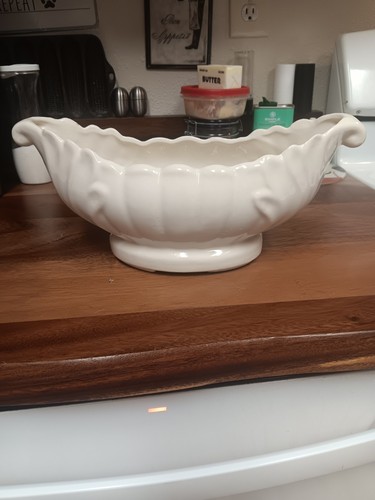 This Ceramic Mantle Vase Vintage features a scalloped pattern, white color, and medium size, perfect for all occasions. Made of ceramic with a glossy finish, this vase exudes a French romantic style from the mid 20th century. With a length of 13.5 inches and a weight of 2 lbs, this vintage piece is a beautiful addition to any adult's department or collection, inspired by the Parisian subject of the time period.